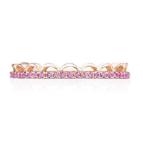 Every queen deserves her crown. Vibrant pink sapphires adorn this diadem ring, which works as both a fashion statement and wedding band.