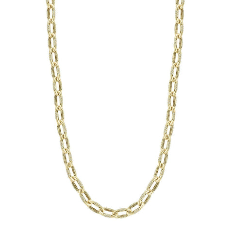 An innovative single-cast, no solder chain of 18kt gold links are decorated with ellipse-shaped patterns of brilliant round diamonds that form the iconic Tacori crescent. This design is timeless, elegant, and showcases Tacori’s unmatched artisanry.