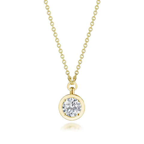 A bezel pendant of captivating depths. The high polish frame enthralls the lab grown diamond center. On the reverse, TACORI Crescent detailing and pinpoint mined diamonds add dimension.