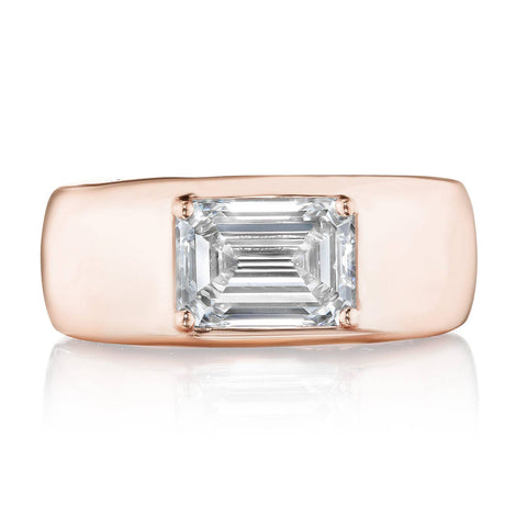 Solid 18k gold is expertly crafted into a sleek, domed ring that enthralls a lab grown diamond center. The high polish finish lends a striking and alluring contrast to the bezel-inspired piece, while a hidden TACORI Crescent adds dimension.