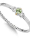 A fashionable 60x47 mm Sterling Silver and 18K Gold Bangle Bracelet with 10 mm Faceted Green Amethyst, a box clasp, and secure locking mechanism.