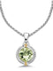 A sparkling Sterling Silver and 18K Gold 10 mm Faceted Green Amethyst Pendant with chain included.
