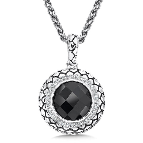 Name | STERLING SILVER ONYX AND DIAMONDS SERPENTINE ROUND PENDANT LVP557-DNXA |