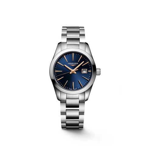 TECHNICAL DATAMOVEMENT: Quartz CALIBER: L152 WATERPROOF: Water-resistant to 5 bar CASE SIZE: 29.50 mm CASE SHAPE: Round CASE MATERIAL: Stainless steel STRAP MATERIAL: Stainless steel STRAP CLASP: With triple safety folding clasp and push-piece opening mechanism DIAL COLOR: Blue GLASS MATERIAL: Sapphire crystal CRYSTAL TYPE: Sapphire crystal