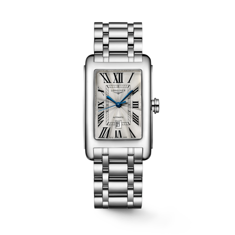 TECHNICAL DATAMOVEMENT: Automatic CALIBER: L592 WATERPROOF: Water-resistant to3 bar CASE SIZE: 27.70 X 43.80 mm CASE SHAPE: Rectangular CASE MATERIAL: Stainless steel STRAP MATERIAL: Stainless steel STRAP CLASP: With triple safety folding clasp and push-piece opening mechanism DIAL COLOR: Silver "flinqué" GLASS MATERIAL: Sapphire crystal CRYSTAL TYPE: Sapphire