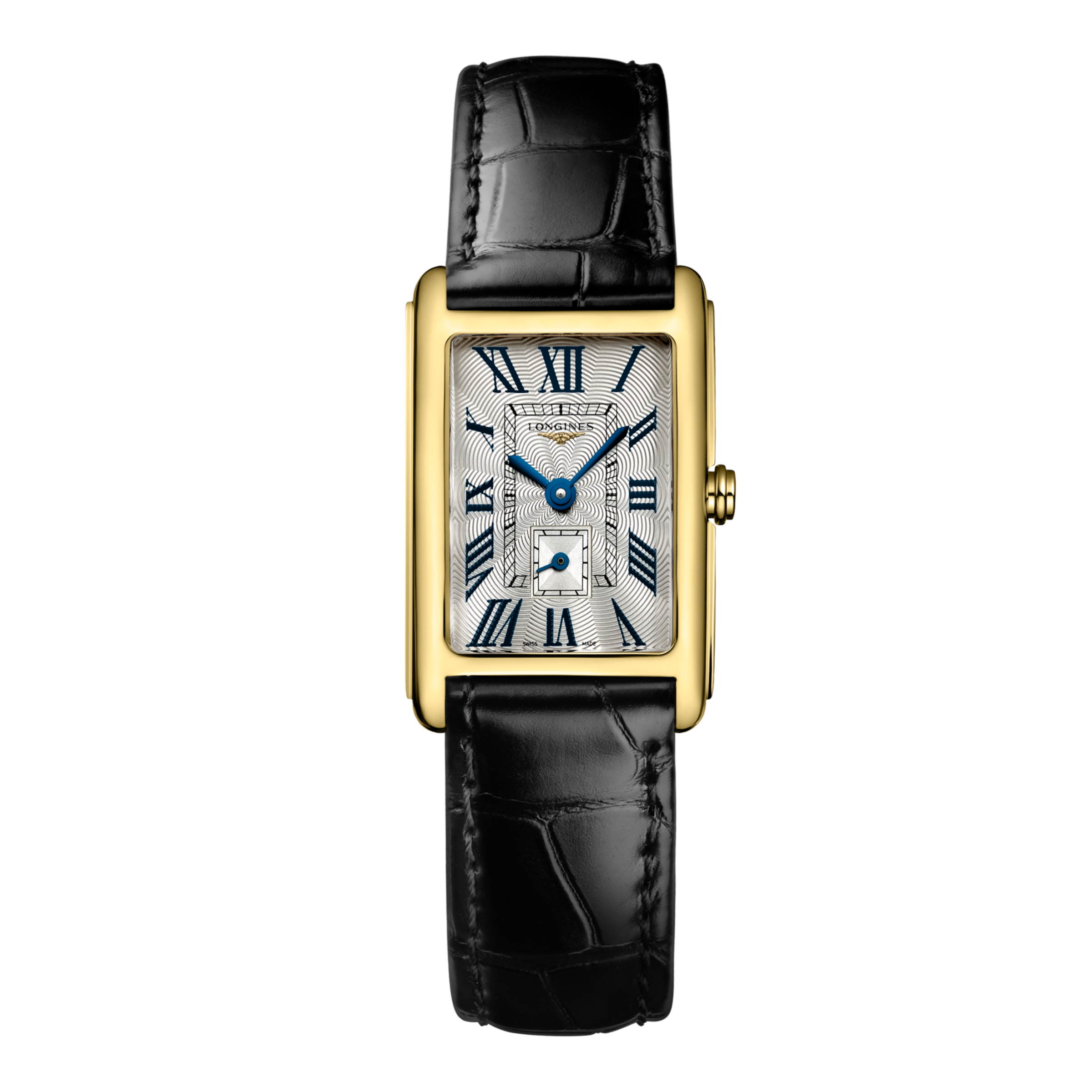 TECHNICAL DATAMODEL: L5.255.6.71.0 COLLECTION: Elegance SUB COLLECTION: Elegance DIAL COLOR: Silver STRAP COLOR: Black STRAP MATERIAL: Alligator STRAP BUCKLE: With Buckle MOVEMENT: Quartz CALIBER: 178 CASE SHAPE: Rectangular CASE SIZE: 20.50 X 32.00 mm CASE MATERIAL: 18 karat yellow gold WATER PROOF: 3 bar