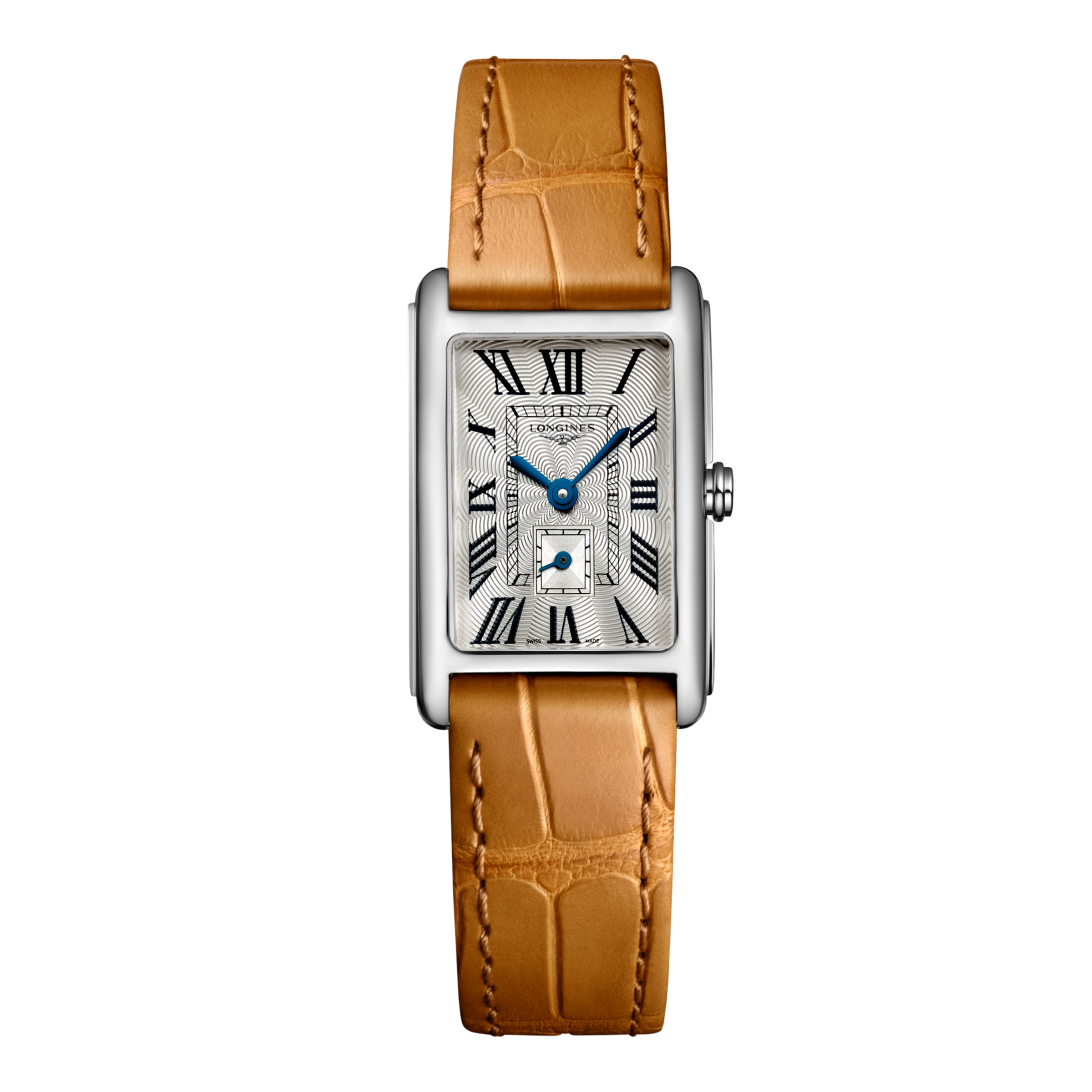 TECHNICAL DATAMODEL: L5.255.4.71.4 COLLECTION: Elegance SUB COLLECTION: Dolcevita DIAL COLOR: Silver STRAP COLOR: Beige STRAP MATERIAL: Alligator STRAP BUCKLE: With Buckle MOVEMENT: Quartz CALIBER: 178 CASE SHAPE: Rectangular CASE SIZE: 20.80 X 32.00 mm CASE MATERIAL: Stainless steel WATER PROOF: 3 bar