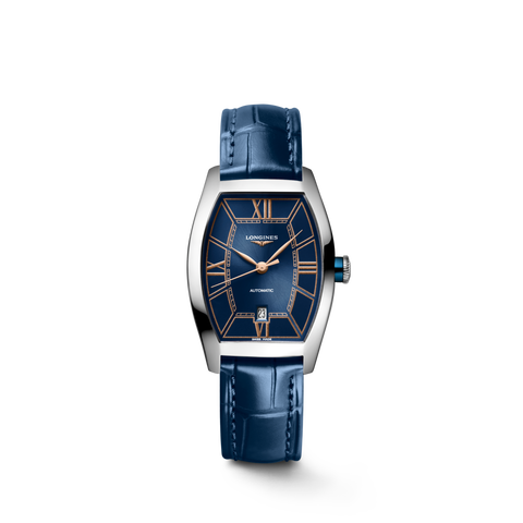 TECHNICAL DATAMOVEMENT: Automatic CALIBER: L592 WATERPROOF: Water-resistant to 3 bar CASE SIZE: 26.00 X 30.60 mm CASE SHAPE: Tonneau CASE MATERIAL: Stainless steel STRAP COLOR: Blue STRAP MATERIAL: Alligator strap STRAP CLASP: With triple safety folding clasp and push-piece opening mechanism DIAL COLOR: Blue GLASS MATERIAL: Sapphire crystal CRYSTAL TYPE: Sapphire crystal
