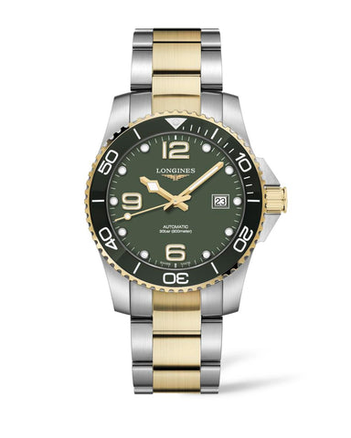 TECHNICAL DATAMOVEMENT: Automatic CALIBER: L888 WATERPROOF: Water-resistant to 30 bar CASE SIZE: 41.00 mm CASE SHAPE: Round CASE MATERIAL: Stainless steel and ceramic bezel STRAP MATERIAL: Stainless steel and yellow PVD coating STRAP CLASP: With double safety folding clasp DIAL COLOR: Green matt