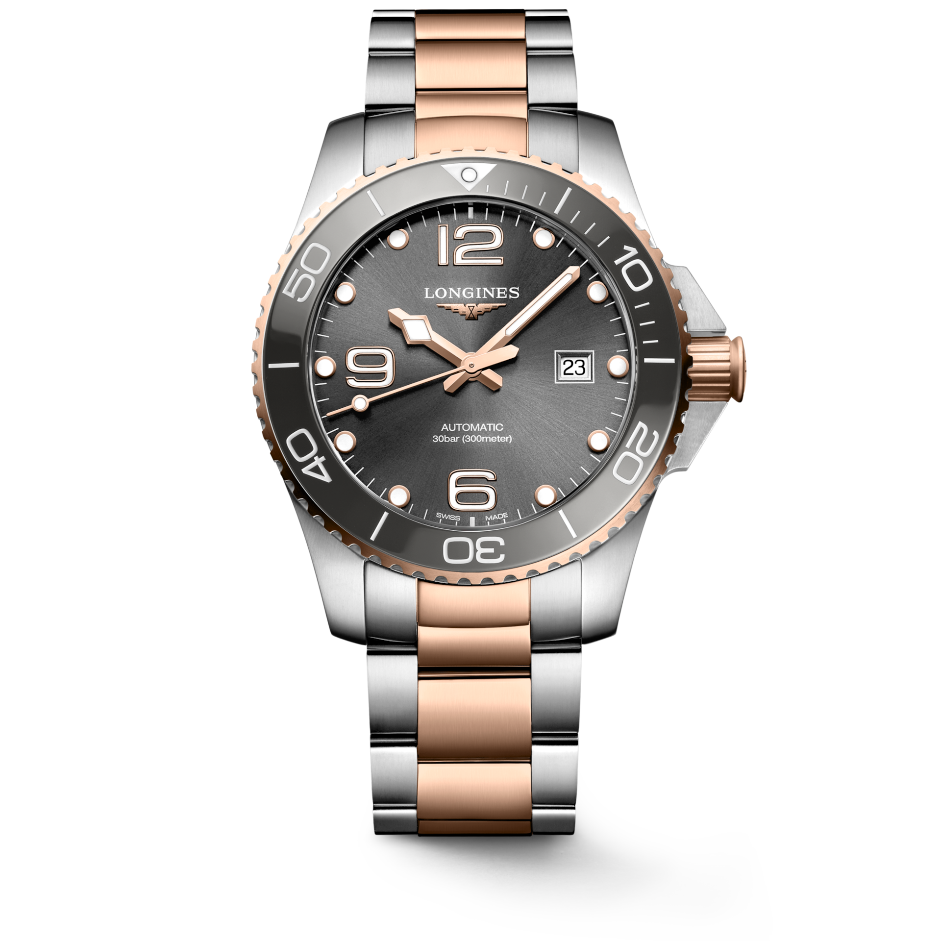 TECHNICAL DATAMOVEMENT: Automatic CALIBER: L888 WATERPROOF: Water-resistant to 30 bar CASE SIZE: 43.00 mm CASE SHAPE: Round CASE MATERIAL: Stainless steel and ceramic bezel STRAP MATERIAL: Stainless steel and yellow PVD coating STRAP CLASP: With double safety folding clas DIAL COLOR: Sunray grey GLASS MATERIAL: Sapphire crystal CRYSTAL TYPE: Sapphire