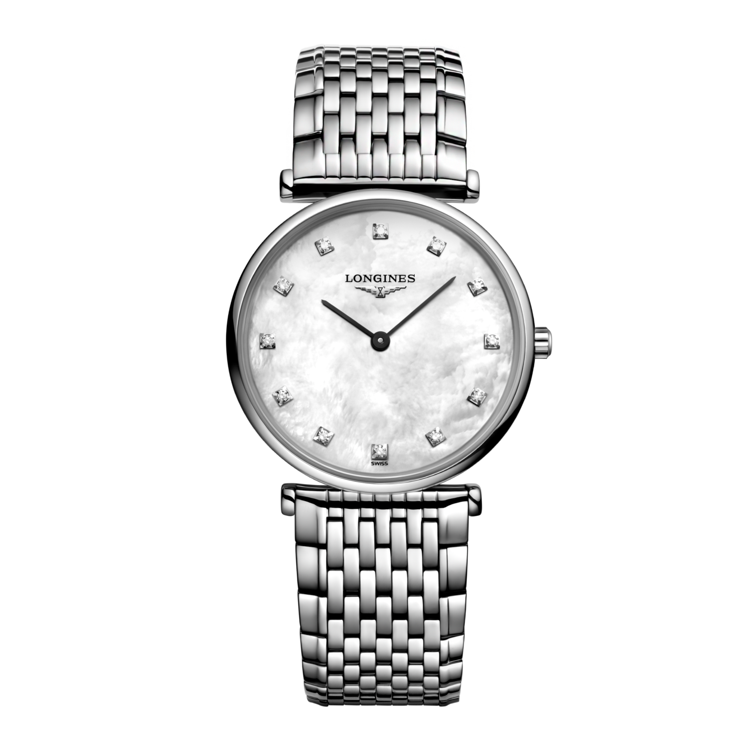 TECHNICAL DATAMODEL: L4.512.4.87.C COLLECTION: Elegance SUB COLLECTION: La Grande Classique DIAL COLOR: White STRAP MATERIAL: Stainless Steel STRAP BUCKLE: With triple safety folding clasp and push-piece opening mechanism MOVEMENT: Quartz CALIBER: 420 CASE SHAPE: Round CASE SIZE: 29.00 mm CASE MATERIAL: Stainless steel WATER PROOF: 3 bar