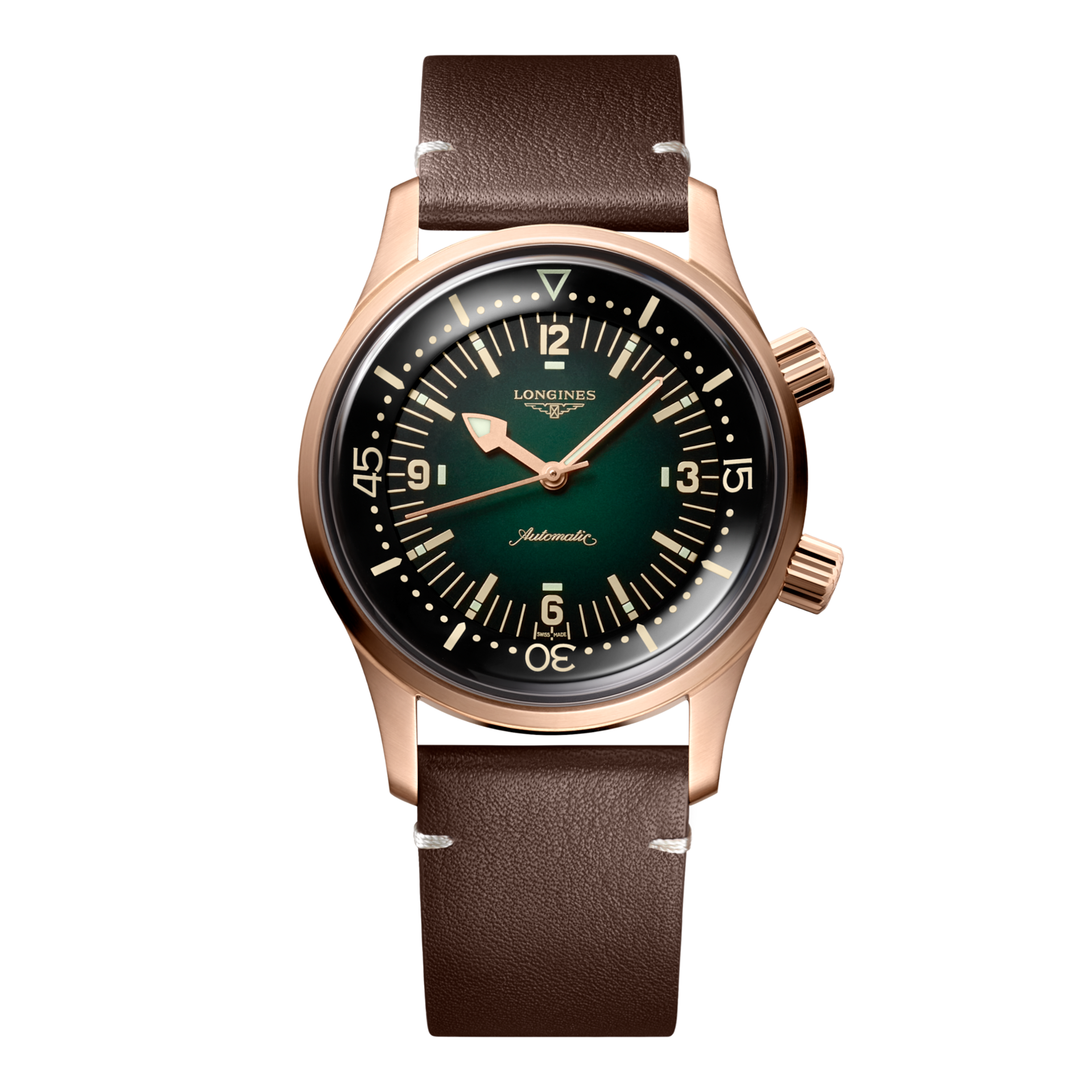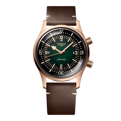 TECHNICAL DATAMOVEMENT: Automatic CALIBER: L889 WATERPROOF: Water-resistant to 30 bar CASE SIZE: 42.00 mm CASE SHAPE: Round CASE MATERIAL: Stainless steel and ceramic bezel STRAP COLOR: Brown STRAP MATERIAL: Leather strap STRAP CLASP: With buckle DIAL COLOR: Green GLASS MATERIAL: Sapphire crystal CRYSTAL TYPE: Sapphire