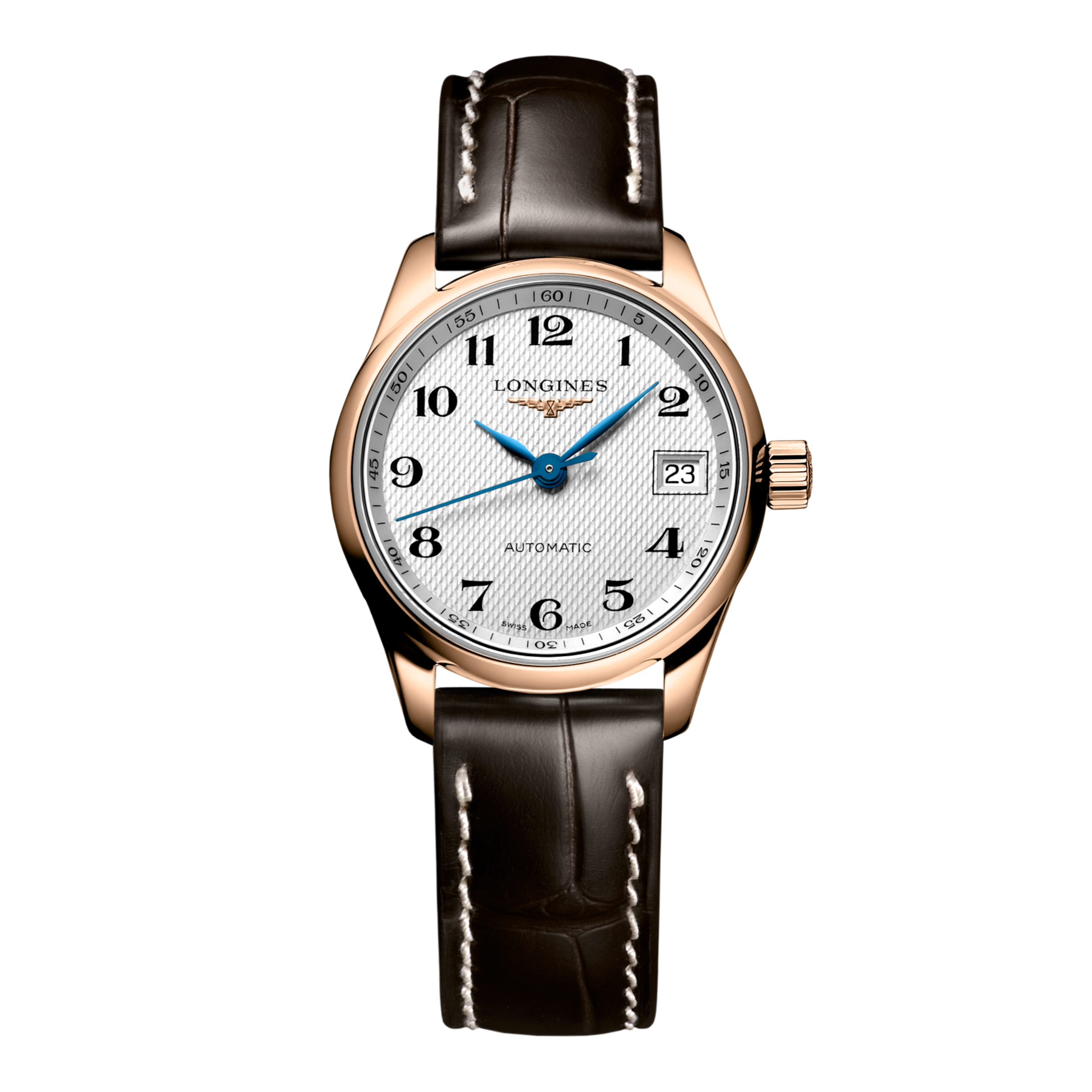 TECHNICAL DATAMODEL: L2.128.8.78.3 COLLECTION: Master DIAL COLOR: Silver STRAP COLOR: Brown STRAP MATERIAL: Alligator STRAP BUCKLE: With triple safety folding clasp and push-piece opening mechanism MOVEMENT: Automatic CALIBER: 592 CASE SHAPE: Round CASE SIZE: 25.50 mm CASE MATERIAL: 18 karat pink gold WATER PROOF: 3 bar