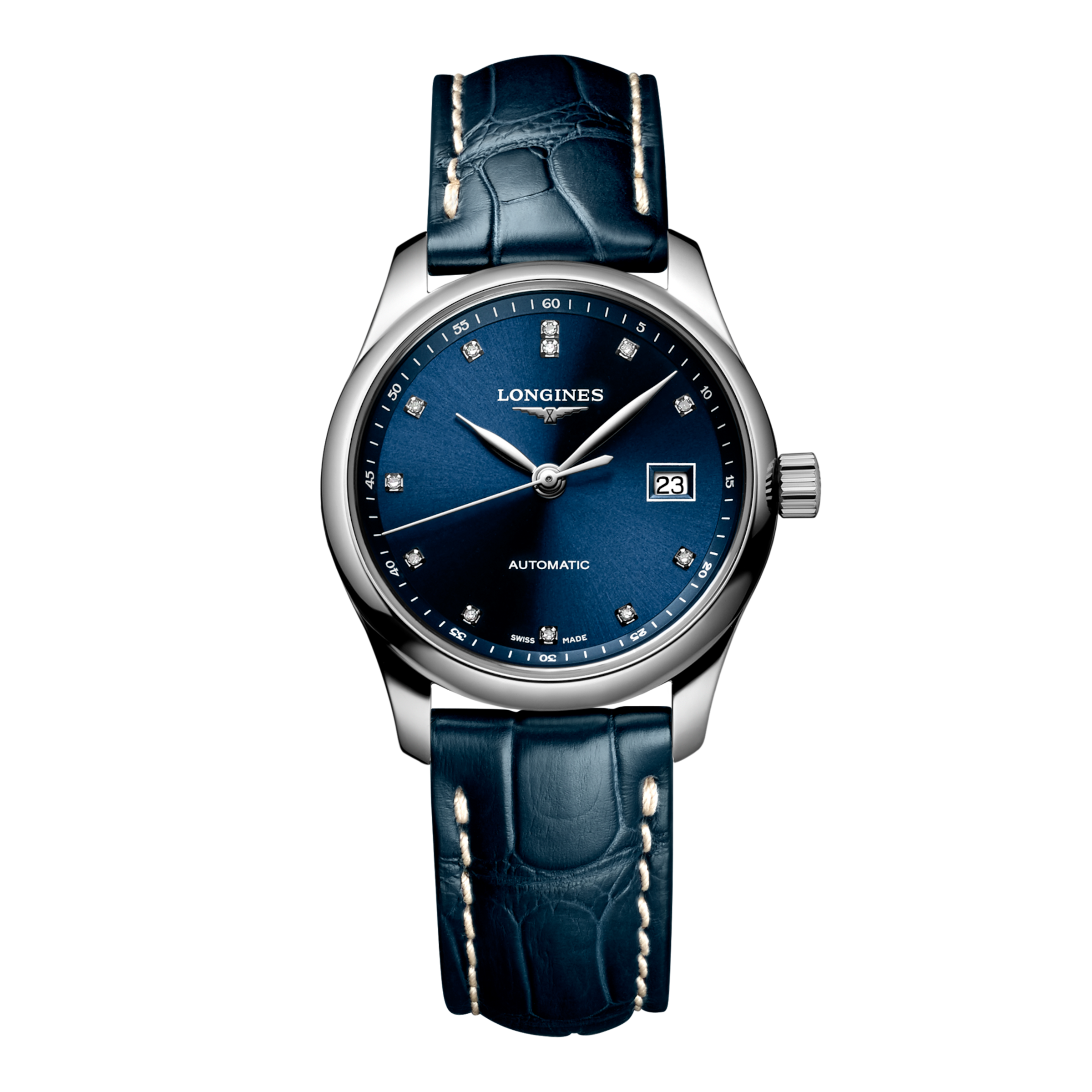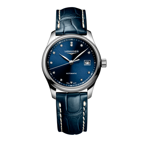 TECHNICAL DATAMODEL: L2.257.4.97.0 COLLECTION: Master DIAL COLOR: Blue STRAP COLOR: Blue STRAP MATERIAL: Alligator STRAP BUCKLE: With triple safety folding clasp and push-piece opening mechanism MOVEMENT: Automatic CALIBER: 592 CASE SHAPE: Round CASE SIZE: 29.00 mm CASE MATERIAL: Stainless steel WATER PROOF: 3 bar