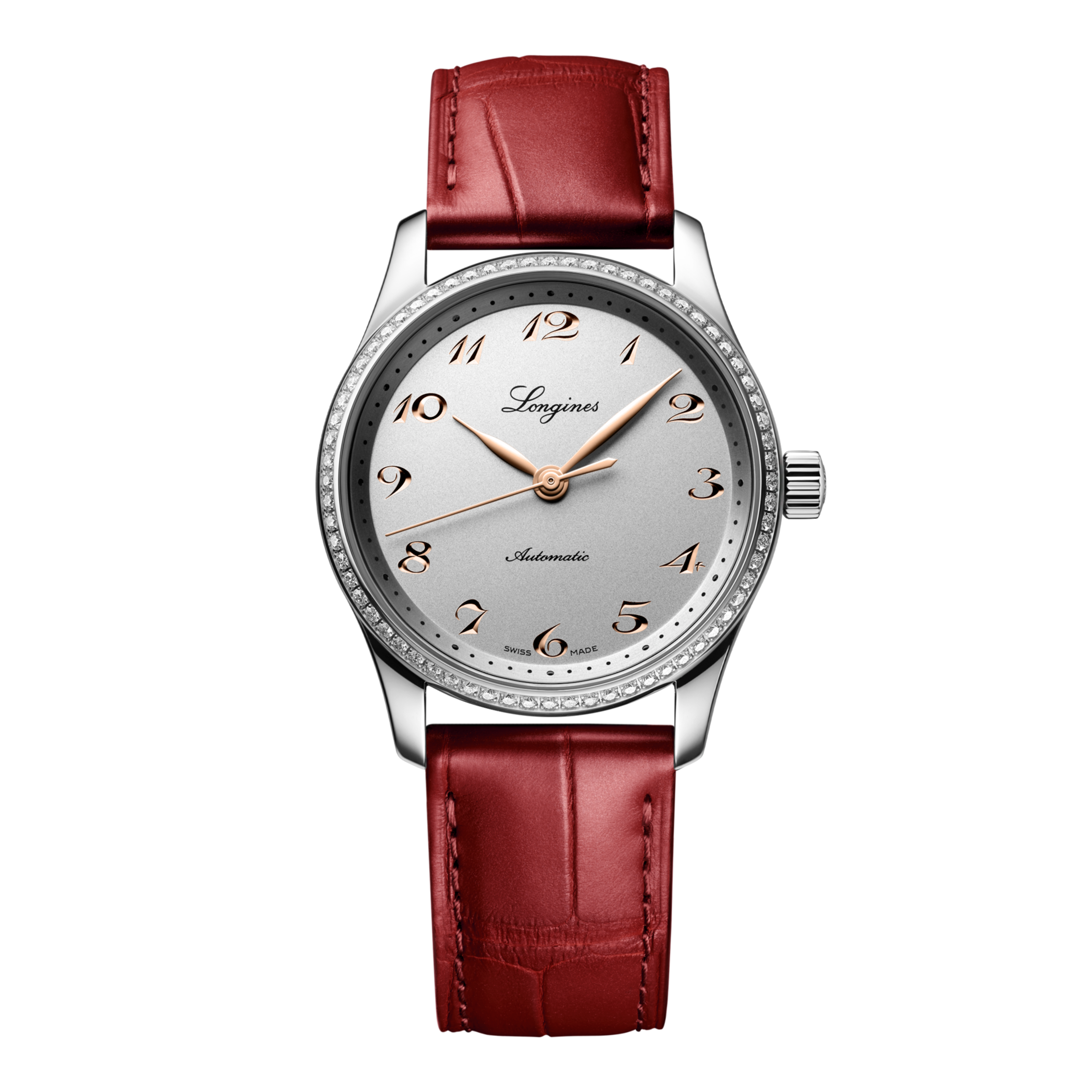 TECHNICAL DATAMODEL: L2.357.0.70.2 COLLECTION: Master DIAL COLOR: Silver STRAP COLOR: Red STRAP MATERIAL: Alligator STRAP BUCKLE: With triple safety folding clasp and push-piece opening mechanism MOVEMENT: Automatic CALIBER: 888 CASE SHAPE: Round CASE SIZE: 34.00 mm CASE MATERIAL: Stainless steel WATER PROOF: 3 bar