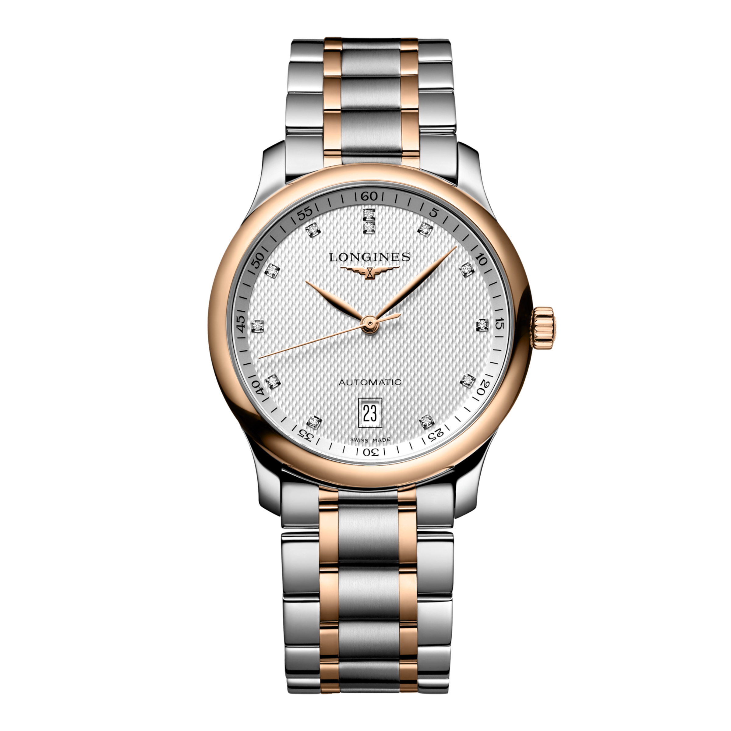 TECHNICAL DATAMODEL: L2.628.5.97.7 COLLECTION: Master DIAL COLOR: Silver STRAP MATERIAL: Stainless Steel STRAP BUCKLE: With triple safety folding clasp and push-piece opening mechanism MOVEMENT: Automatic CALIBER: 888 CASE SHAPE: Round CASE SIZE: 38.50 mm CASE MATERIAL: Stainless steel and 18 karat pink gold cap 200 WATER PROOF: 3 bar