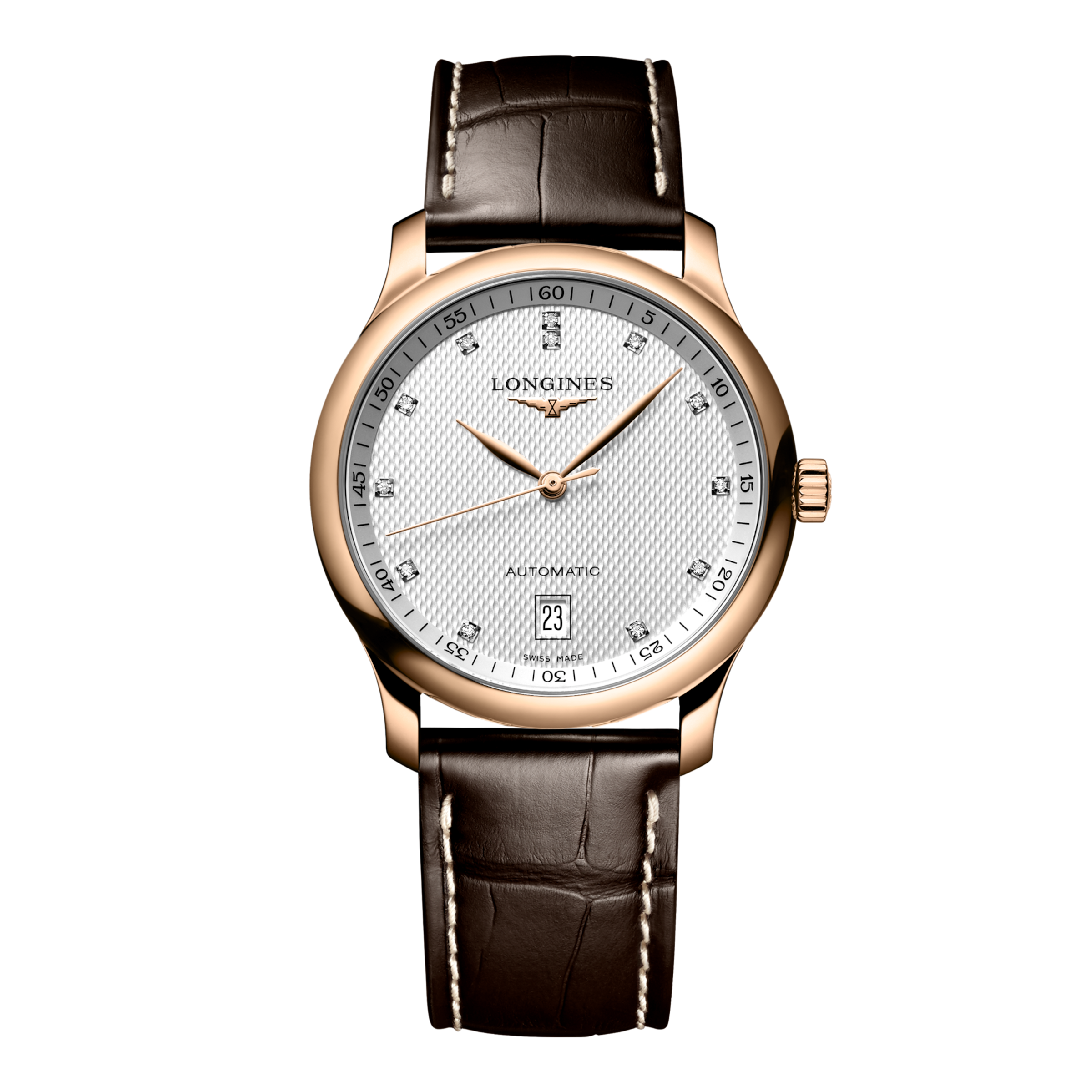 TECHNICAL DATAMODEL: L2.628.8.77.3 COLLECTION: Master DIAL COLOR: Silver STRAP COLOR: Brown STRAP MATERIAL: Alligator STRAP BUCKLE: With triple safety folding clasp and push-piece opening mechanism MOVEMENT: Automatic CALIBER: 888 CASE SHAPE: Round CASE SIZE: 38.50 mm CASE MATERIAL: 18 karat pink gold WATER PROOF: 3 bar