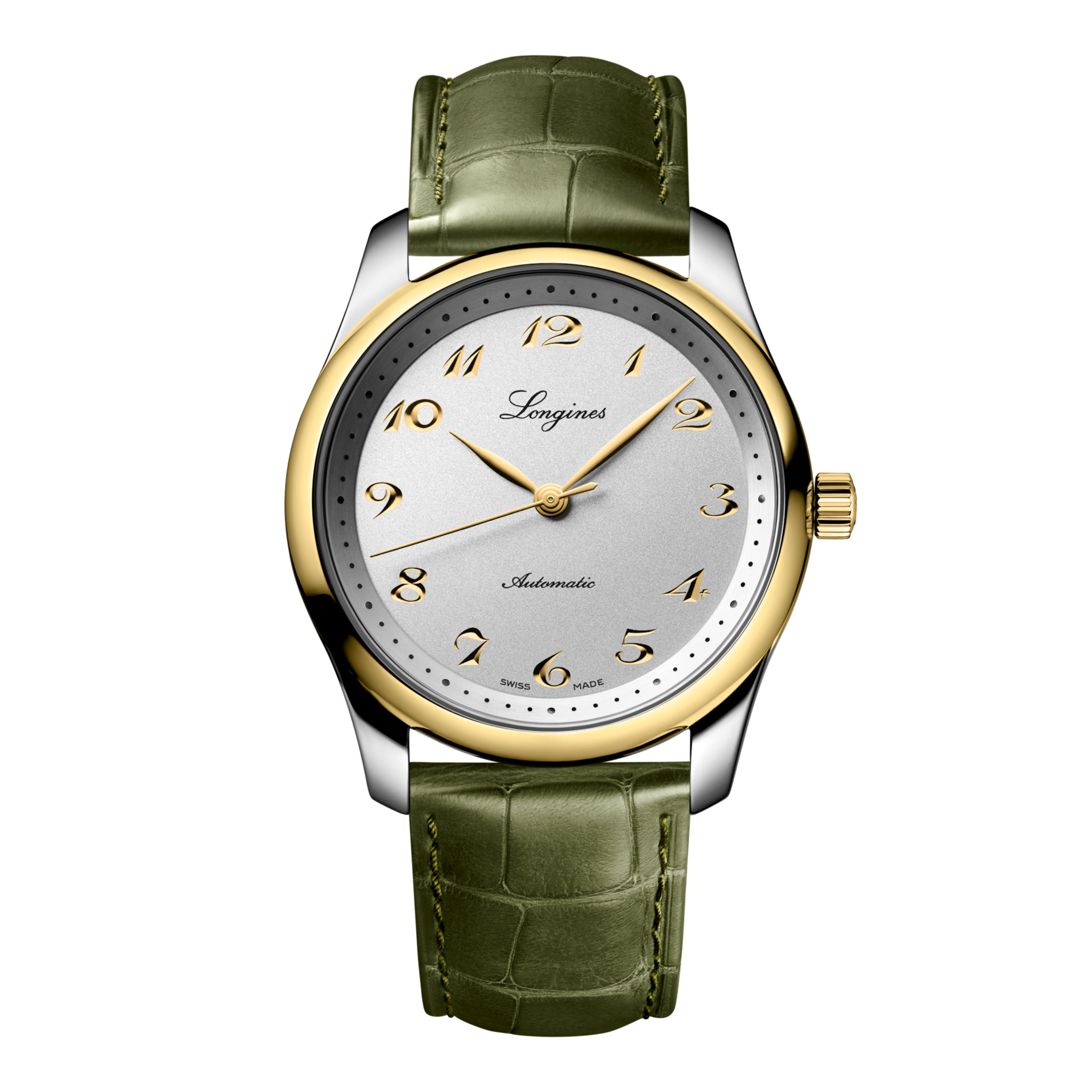 TECHNICAL DATAMODEL: L2.793.5.72.2 COLLECTION: Master DIAL COLOR: Silver STRAP COLOR: Green STRAP MATERIAL: Alligator STRAP BUCKLE: With triple safety folding clasp and push-piece opening mechanism MOVEMENT: Automatic CALIBER: 888 CASE SHAPE: Round CASE SIZE: 40.00 mm CASE MATERIAL: Stainless steel and 18 karat yellow gold cap 200 WATER PROOF: 3 bar