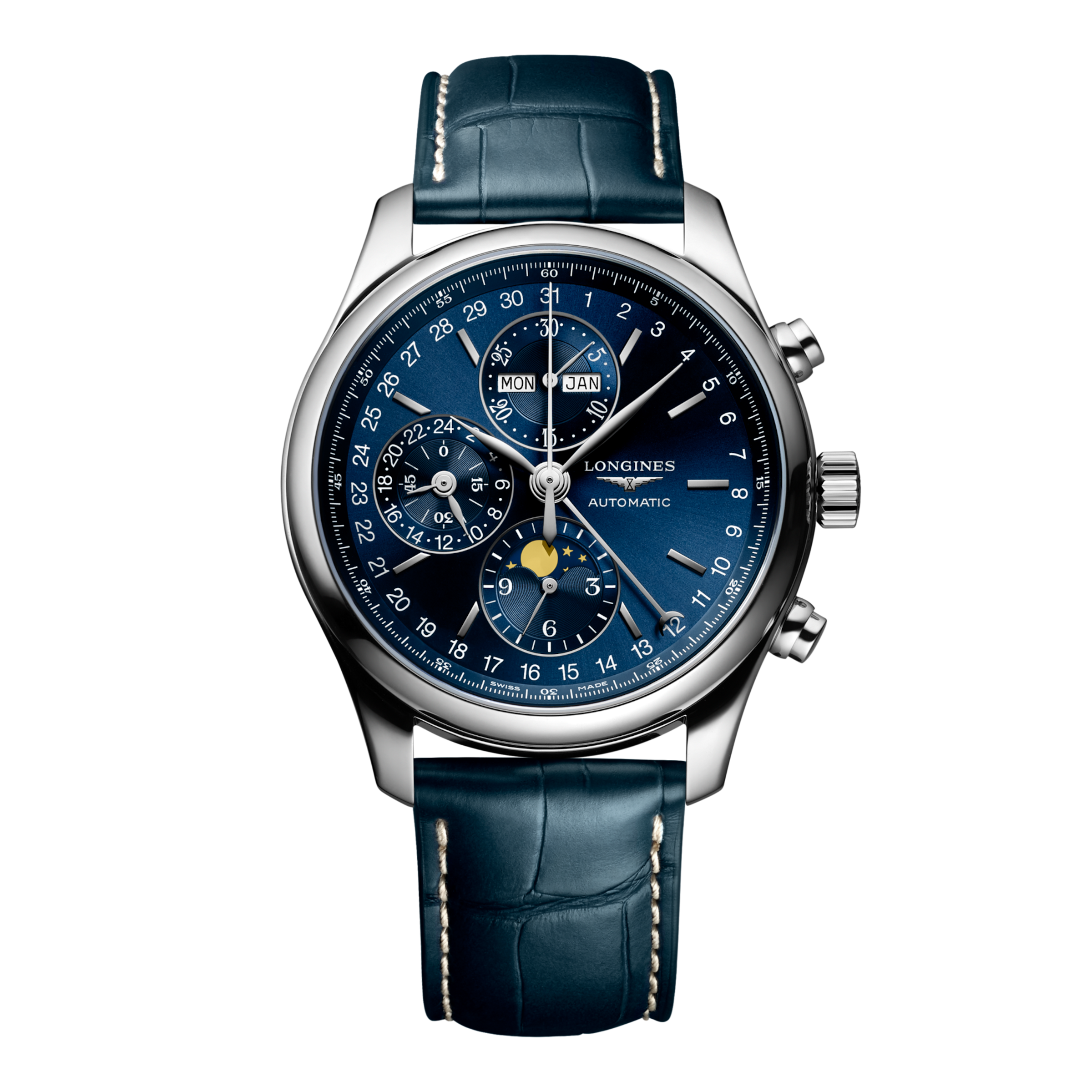 TECHNICAL DATAMODEL: L2.773.4.92.0 COLLECTION: Master SUB COLLECTION: Master DIAL COLOR: Blue STRAP COLOR: Blue STRAP MATERIAL: Alligator STRAP BUCKLE: With triple safety folding clasp and push-piece opening mechanism MOVEMENT: Automatic CALIBER: 687 CASE SHAPE: Round CASE SIZE: 42.00 mm CASE MATERIAL: Stainless steel WATER PROOF: 3 bar