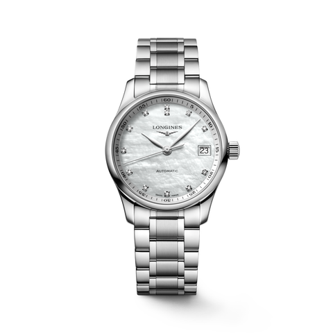 TECHNICAL DATAMOVEMENT: Automatic CALIBER: L888 WATERPROOF: Water-resistant to 3 bar CASE SIZE: 34.00 mm CASE SHAPE: Round CASE MATERIAL: Stainless steel STRAP MATERIAL: Stainless steel STRAP CLASP: With triple safety folding clasp and push-piece opening mechanism DIAL COLOR: White mother-of-pearl GLASS MATERIAL: Sapphire crystal CRYSTAL TYPE: Sapphire crystal