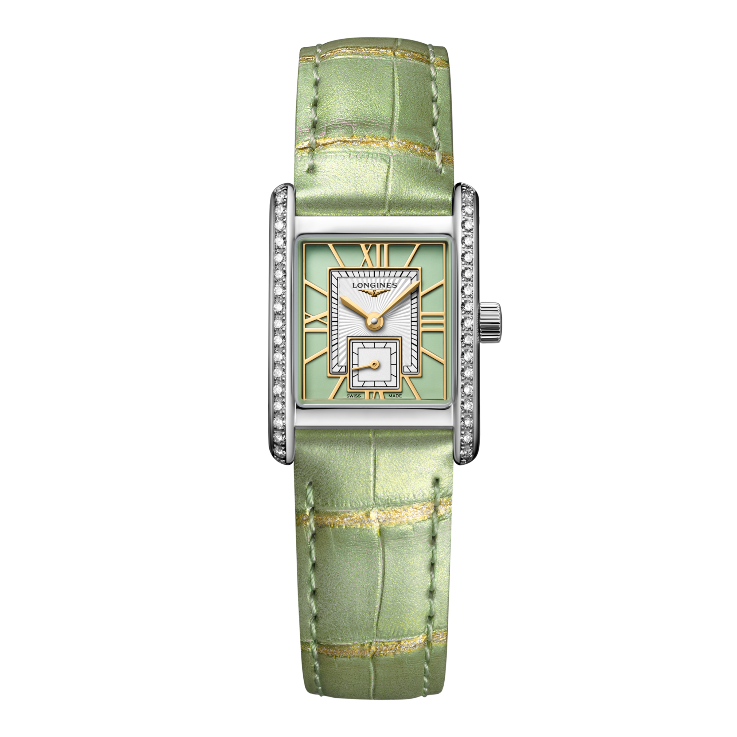 TECHNICAL DATAMODEL: L5.200.0.05.2 COLLECTION: Elegance SUB COLLECTION: Mini Dolcevita DIAL COLOR: Green STRAP COLOR: Green STRAP MATERIAL: Alligator STRAP BUCKLE: With Buckle MOVEMENT: Quartz CALIBER: 178 CASE SHAPE: Rectangular CASE SIZE: 21.50 X 29.00 mm CASE MATERIAL: Stainless steel WATER PROOF: 3 bar
