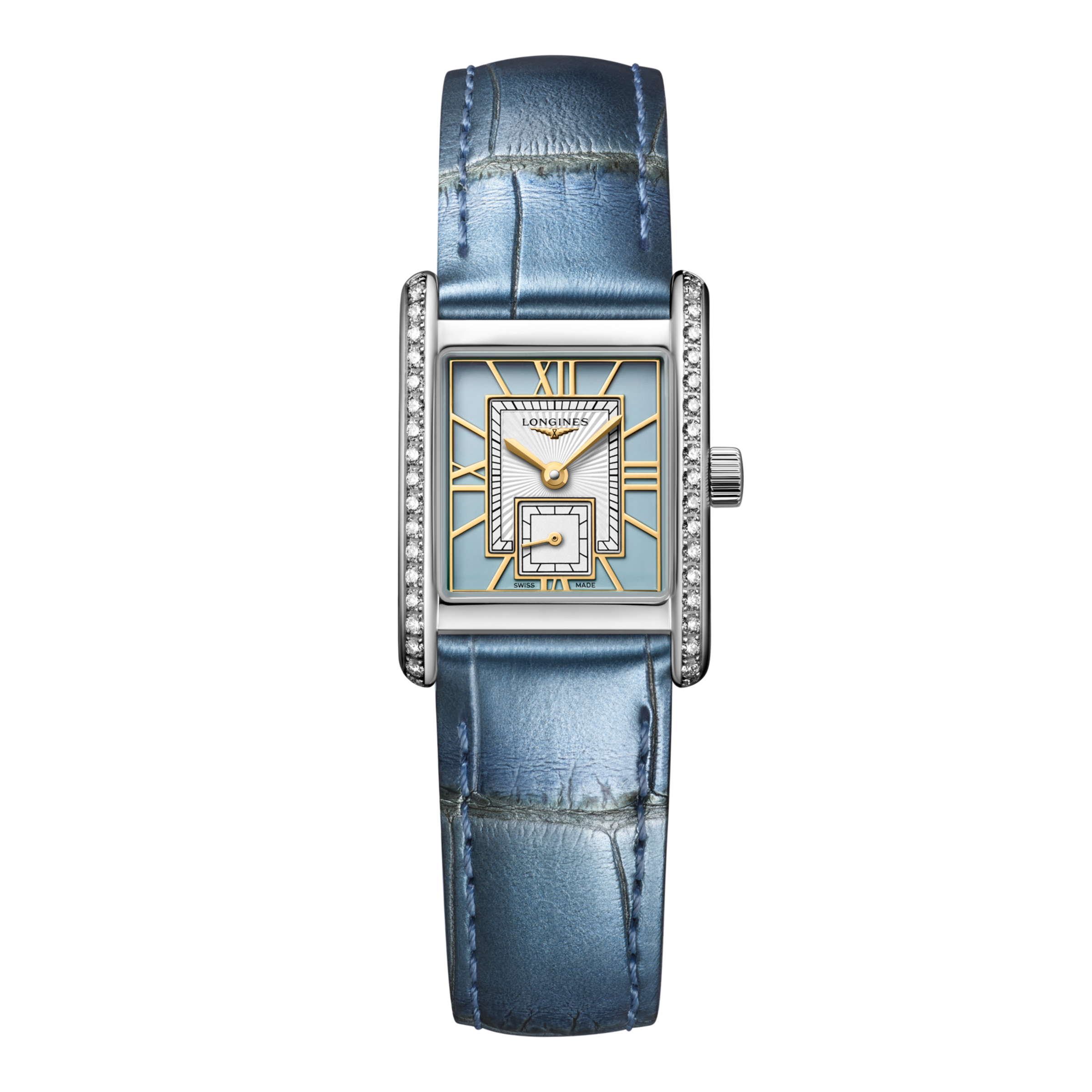TECHNICAL DATAMODEL: L5.200.0.95.2 COLLECTION: Elegance SUB COLLECTION: Mini Dolcevita DIAL COLOR: Blue STRAP COLOR: Blue STRAP MATERIAL: Alligator STRAP BUCKLE: With Buckle MOVEMENT: Quartz CALIBER: 178 CASE SHAPE: Rectangular CASE SIZE: 21.50 X 29.00 mm CASE MATERIAL: Stainless steel WATER PROOF: 3 bar