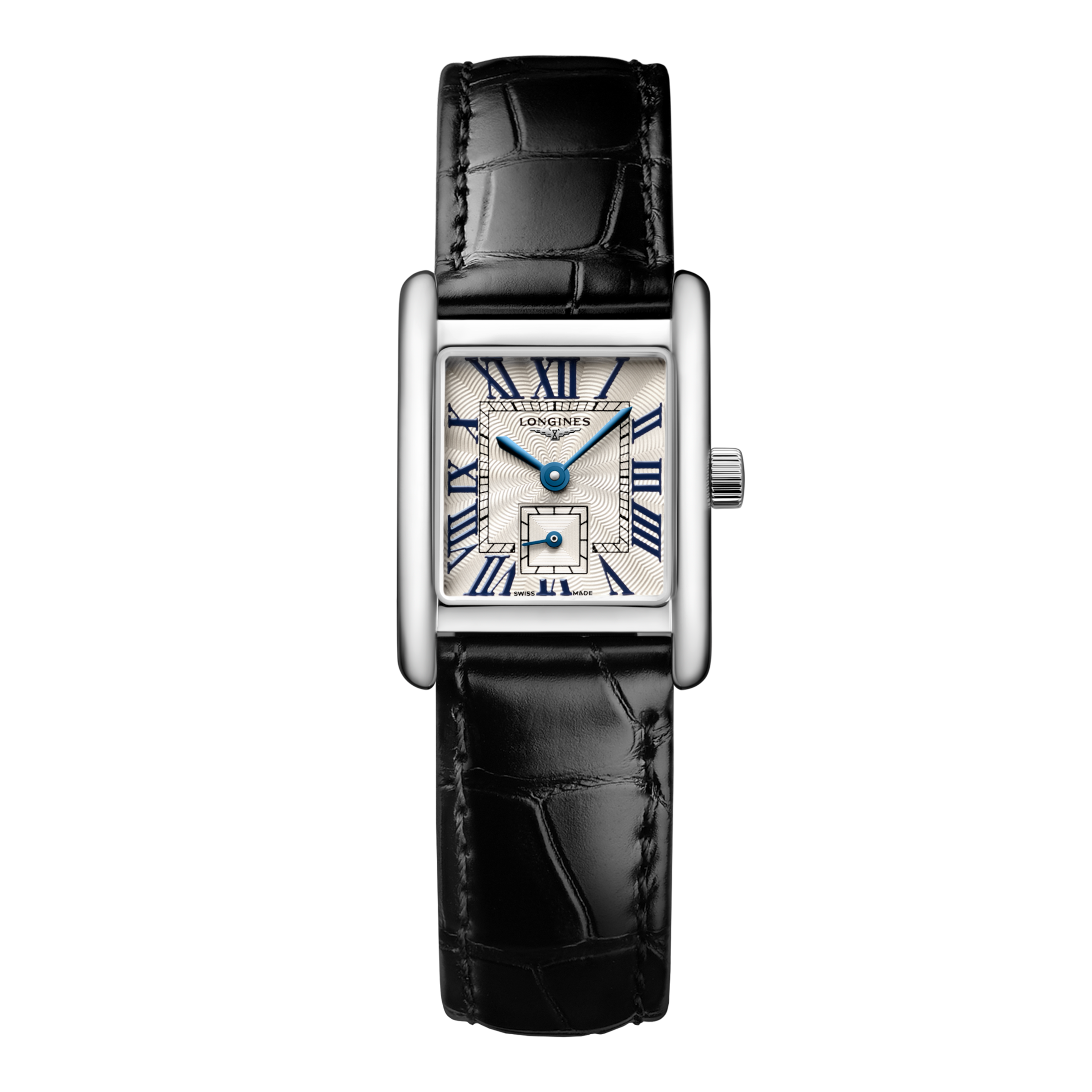 TECHNICAL DATAMODEL: L5.200.4.71.2 COLLECTION: Elegance SUB COLLECTION: Mini Dolcevita DIAL COLOR: Silver STRAP COLOR: Black STRAP MATERIAL: Alligator STRAP BUCKLE: With Buckle MOVEMENT: Quartz CALIBER: 178 CASE SHAPE: Rectangular CASE SIZE: 21.50 X 29.00 mm CASE MATERIAL: Stainless steel WATER PROOF: 3 bar