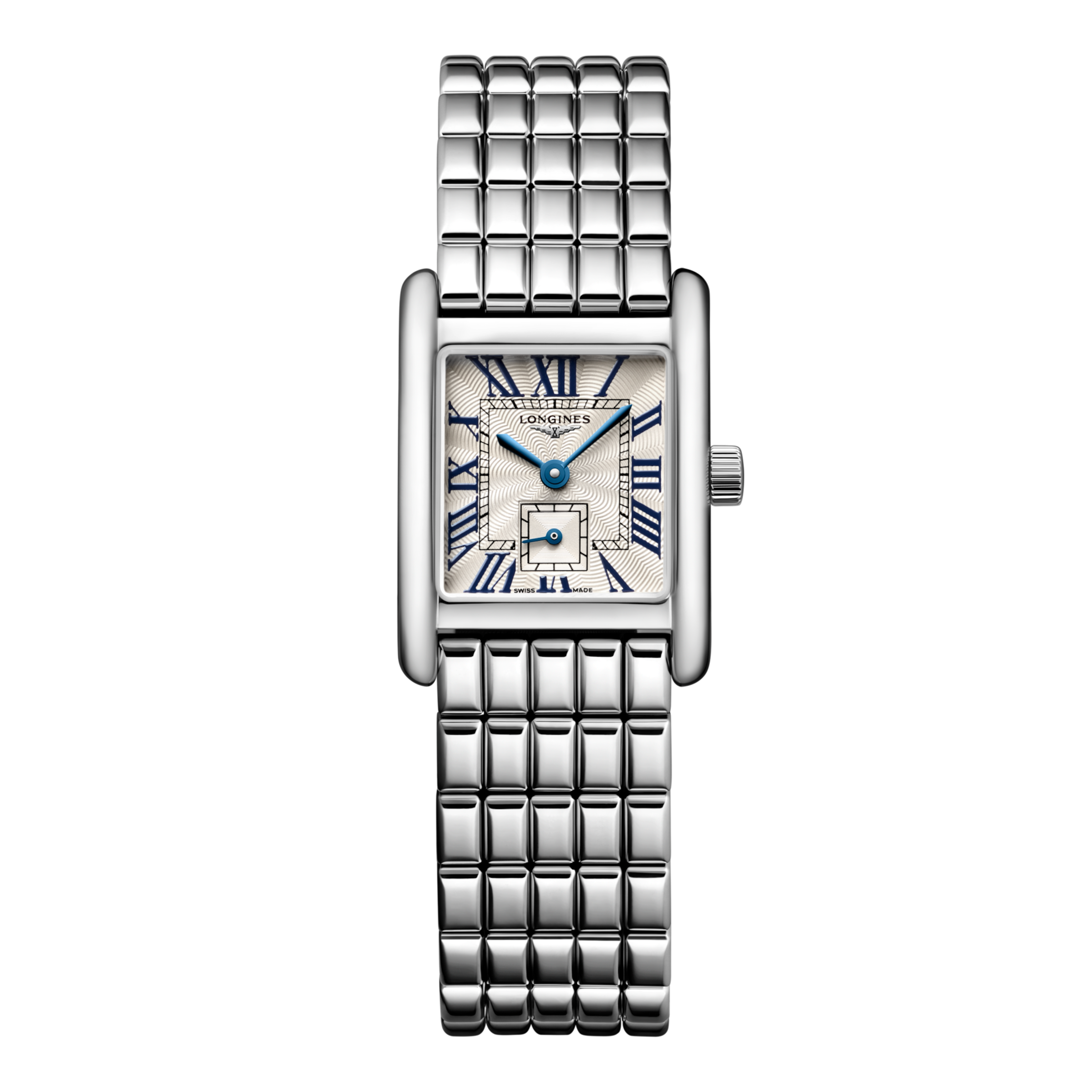 TECHNICAL DATAMODEL: L5.200.4.71.6 COLLECTION: Elegance SUB COLLECTION: Mini Dolcevita DIAL COLOR: Silver STRAP MATERIAL: Stainless Steel STRAP BUCKLE: With triple safety folding clasp and push-piece opening mechanism MOVEMENT: Quartz CALIBER: 178 CASE SHAPE: Rectangular CASE SIZE: 21.50 X 29.00 mm CASE MATERIAL: Stainless steel WATER PROOF: 3 bar