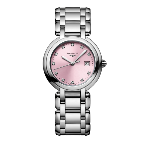 TECHNICAL DATAMODEL: L8.122.4.99.6 COLLECTION: Elegance SUB COLLECTION: Elegance DIAL COLOR: Pink STRAP MATERIAL: Stainless Steel STRAP BUCKLE: With triple safety folding clasp and push-piece opening mechanism MOVEMENT: Quartz CALIBER: 152 CASE SHAPE: Round CASE SIZE: 30.00 mm CASE MATERIAL: Stainless steel WATER PROOF: 3 bar