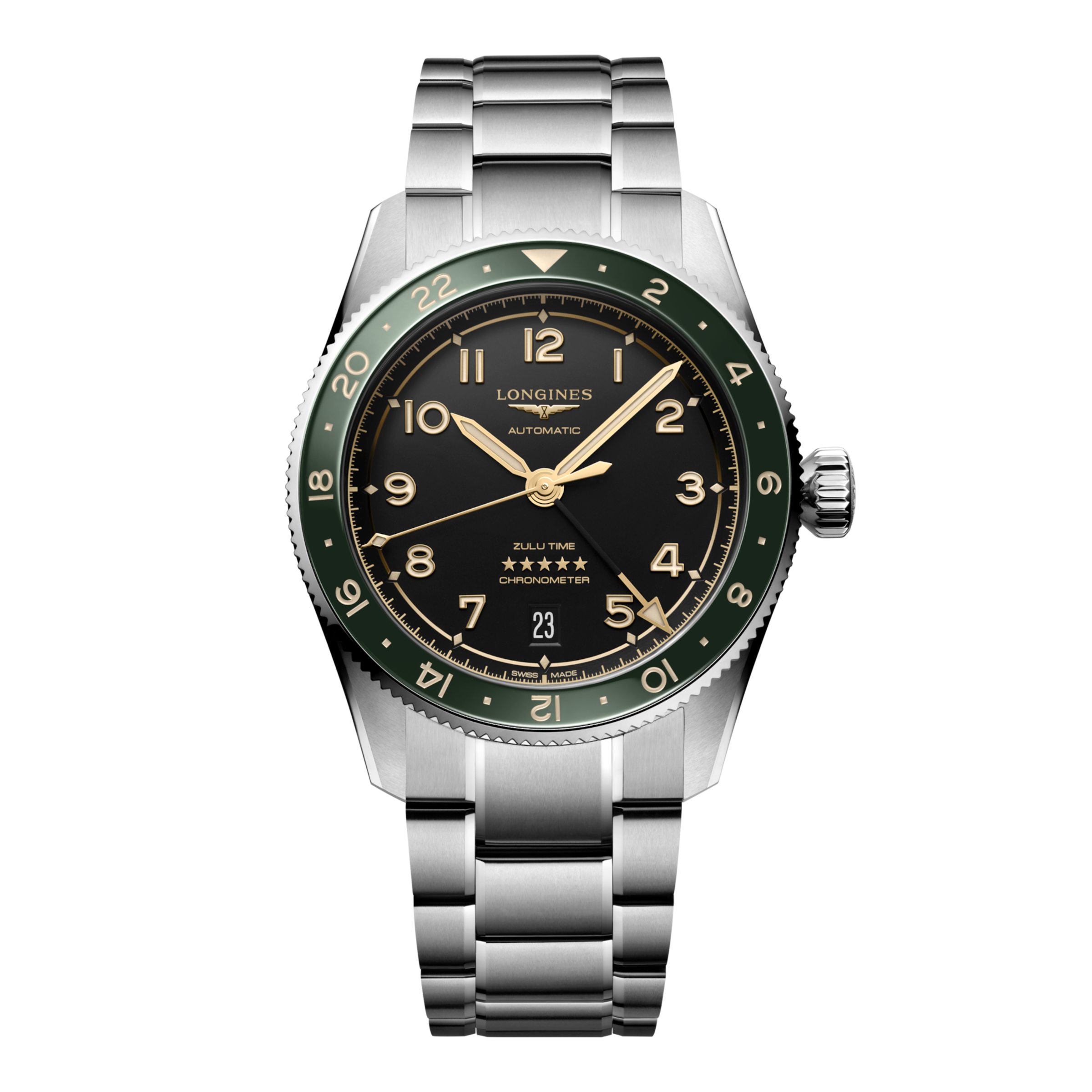 TECHNICAL DATAMODEL: L3.802.4.63.6 COLLECTION: Spirit SUB COLLECTION: Zulu Time DIAL COLOR: Anthracite STRAP MATERIAL: Stainless Steel STRAP BUCKLE: With double safety folding clasp and push-piece opening mechanism MOVEMENT: Automatic CALIBER: 844.4 CASE SHAPE: Round CASE SIZE: 39.00 mm CASE MATERIAL: Stainless steel and ceramic bezel BEZEL MATERIAL: Bi-directional rotating bezel, Screw-in crown WATER PROOF: 10 bar