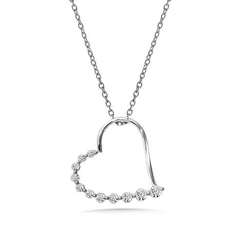 14K WHITE GOLD DIAMOND HEART PENDANT.