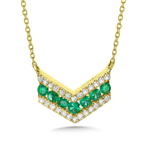 ANGLED 3-ROW DIAMOND AND EMERALD NECKLACE