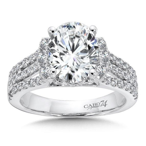 Engagement ring with oval-shape center and three split rows of diamond side stones. Style with platinum head. with Platinum Head sold separately.