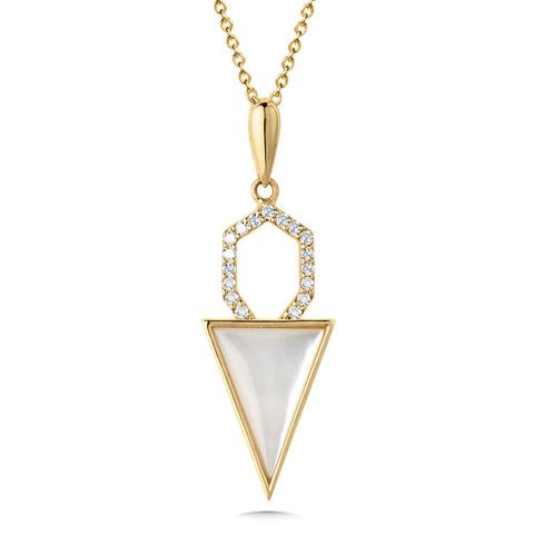 GEOMETRIC DIAMOND & TRIANGLE-CUT WHITE MOTHER OF PEARL PENDANT CGP198Y-DMOP