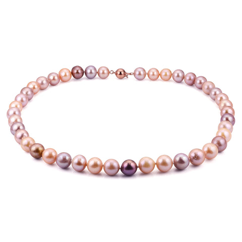 With incredible luster, vibrant natural color and large 9.5-11.5mm size, these pearls will stop customers dead in their tracks as they pass by your pearl case!. The 14k polished rose gold clasp is the perfect finish to a beautiful strand. A match made in heaven.