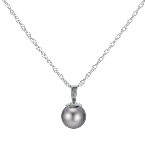 14K white gold 6-6.5mm black akoya cultured pearl pendant on 18" rope chain.