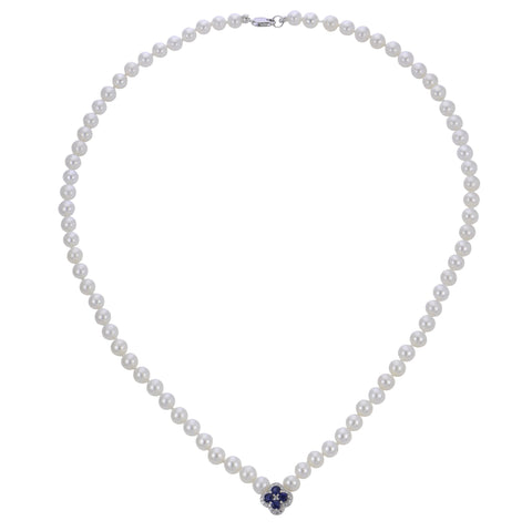 18" 14KW 5-5.5MM AA FWCP & BLUE SAPPHIRE & DIA NECKLACE