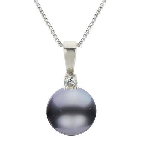 14k white gold 9-10mm Tahitian cultured pearl and diamond (.10ctw) pendant on 18" chain.