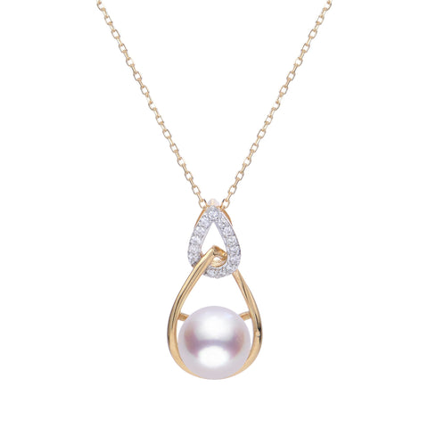*Featured on the pages on INSTORE magazine*It is no surprise that our jewelers and their customers are loving this best selling design suite as it is made with such high quality components in a modern elegant design aesthetic. This pendant features a 9-9.5mm lusterous Japanese Akoya pearl set in 14k yellow gold and surrounded by shimmering diamonds. The chain is 18 inches with a 2 inch extender.