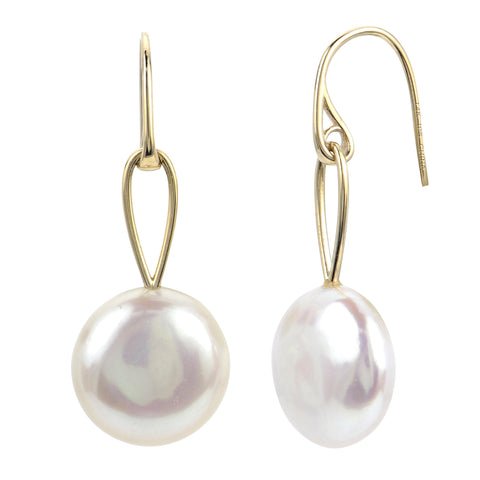 14KY 11-12MM COIN PEARL HOOK EARRING