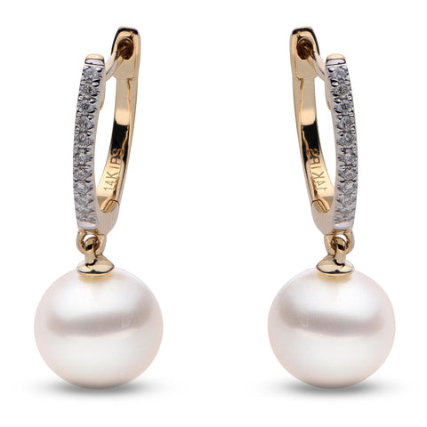 14KY 8-8.5MM WHITE FWP & DIAMOND EARRINGS