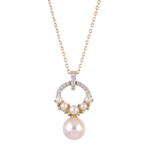 18" ADJ 16" 14KY AA FWCP & SEED PEARL DIAMOND NECKLACE