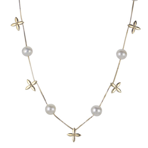 18" 14KY 6-6.5MM AA FWCP 4 PETAL FLOWER NECKLACE