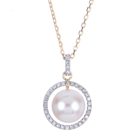 18" 14KY 7.5-8MM AA FWCP & DIA NECKLACE
