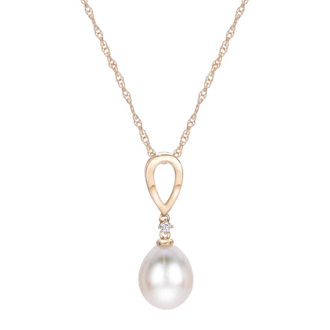 18" 14K 8-9MM FWP & 14K DIAMOND PENDANT (.015 CTTW