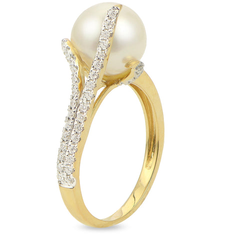 14KY 9.5-10MM AA FWP & DIAMOND (.24 CTW) RING