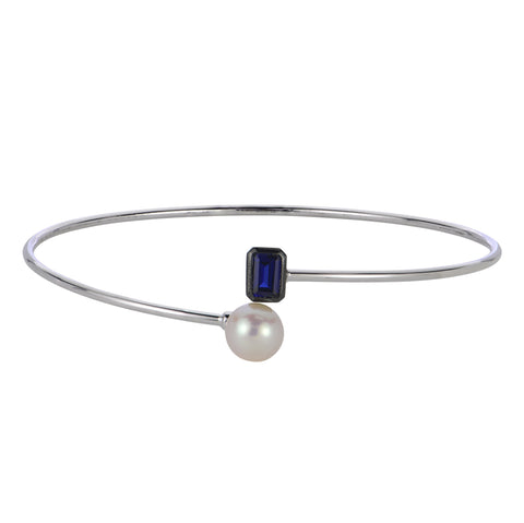 7.5" 925/BLK RH 7.5-8MM AA FWCP & CRT BLUE SAPPHIRE BY-PASS BANGLE
