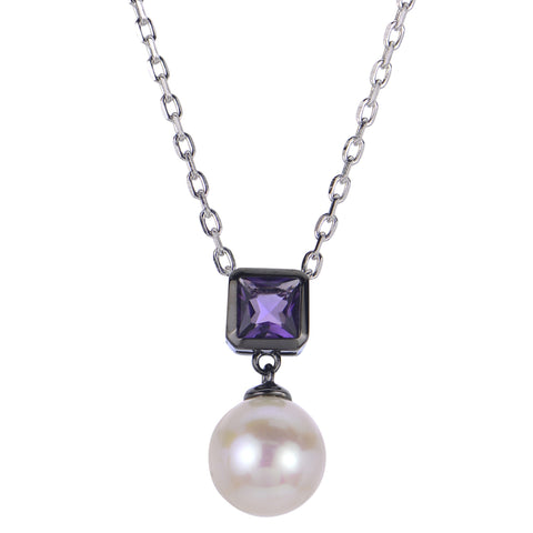 18" 925 BLK/RH 7.5-8MM AA FWCP & AMETHYST NECKLACE