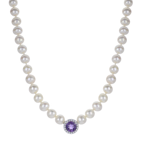 16"+2" 925 6-7MM FWCP AMETHYST & WHITE TOPAZ NECKLACE