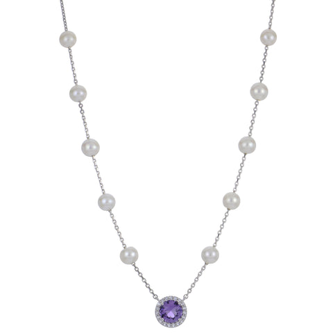18" ADJ 16" 925 5-6MM FWCP AMETHYST & WHITE TOPAZ NECKLACE